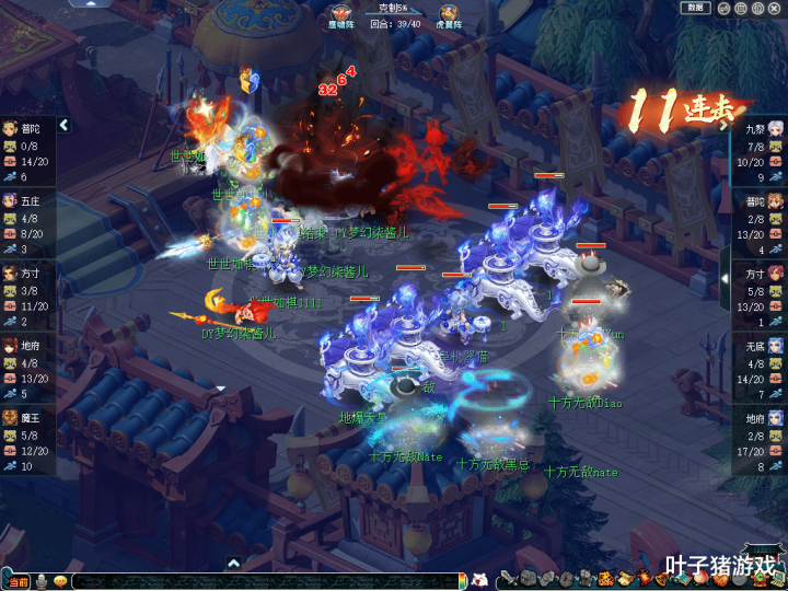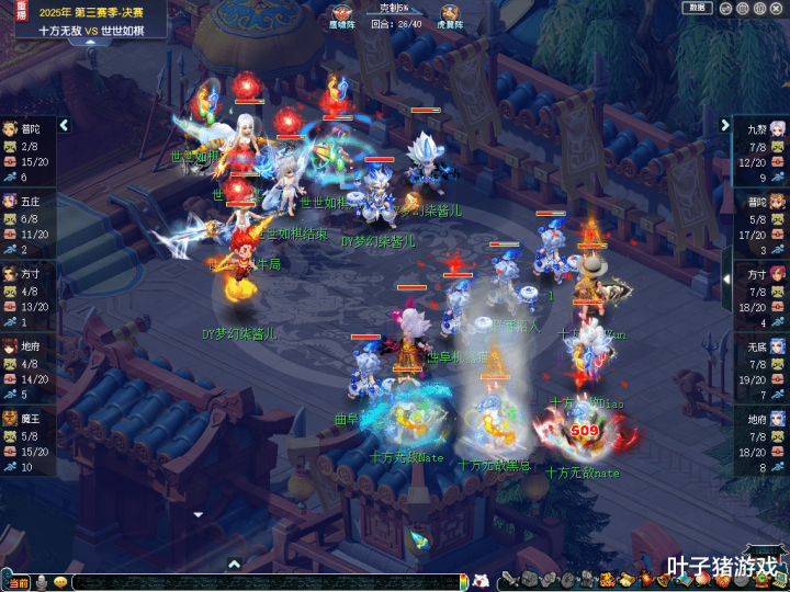 比赛第5回合,【十方无敌】靠着九黎城的输出,一波点掉了【世世如棋】魔王寨,令其非常难受。